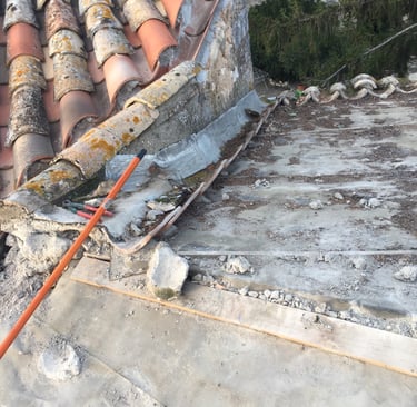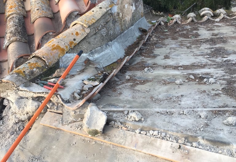 Nous avons façonné une pièce de zinguerie sur-mesure afin d'évacuer l'eau à la rencontre de ces deux toitures.